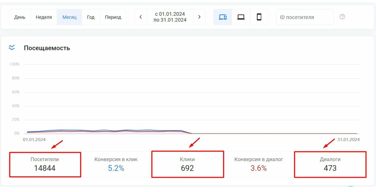 Количество обращений фиксируется только для новых клиентов, с которыми у вас раньше не было диалогов.