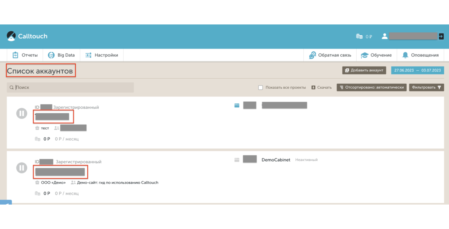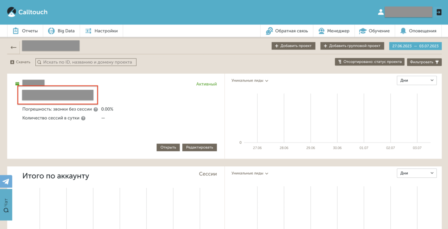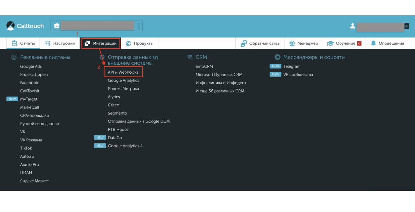 Для этого зайдите в личный кабинет Calltouch в раздел «