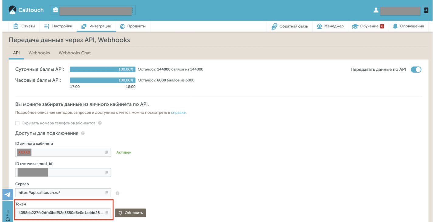 Где найти ID Личного Кабинета Calltouch?) сгенерируйте (если у вас еще нет активного токена API) и скопируйте токен для вставки в личном кабинете Yourgood.Widget.