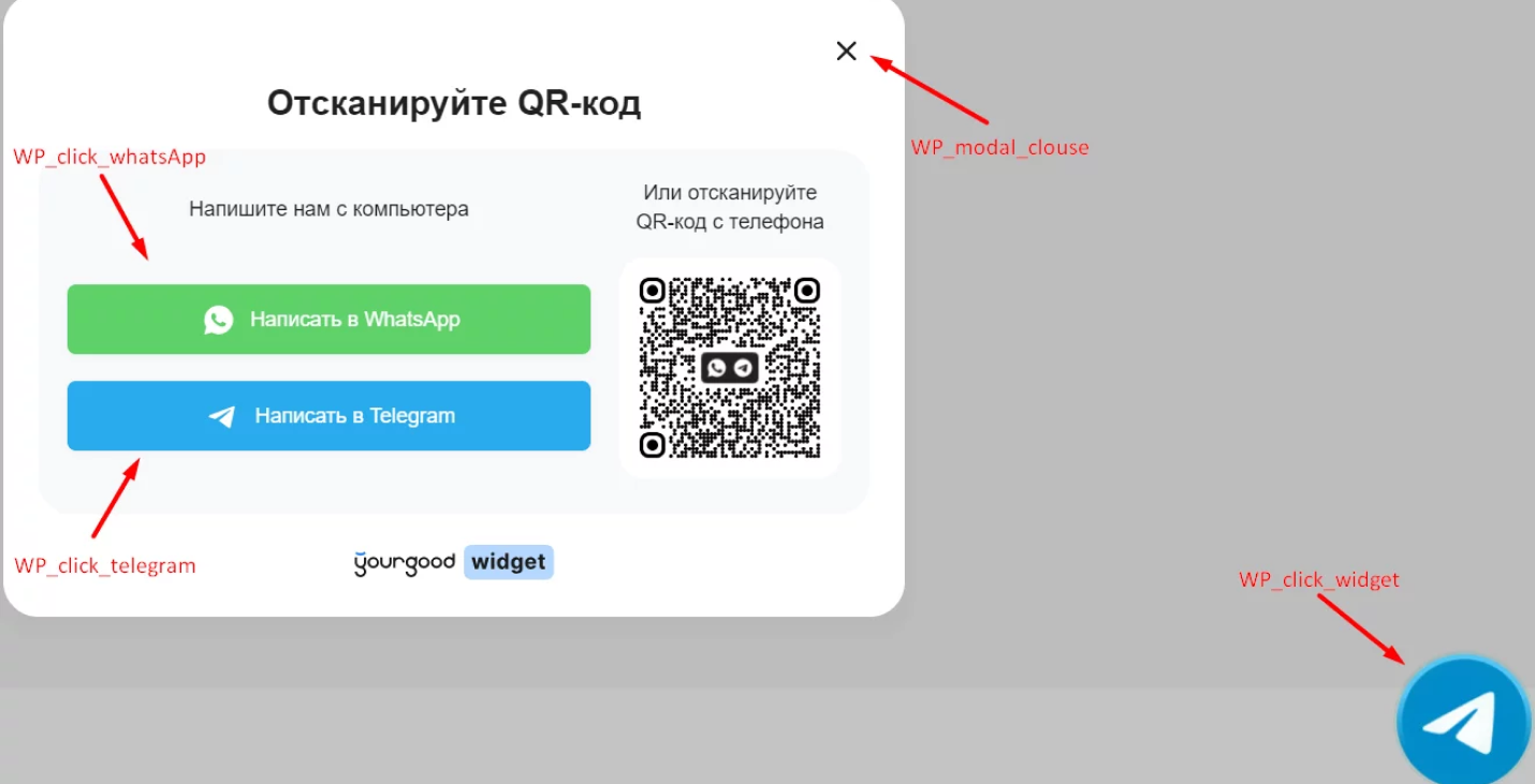 - WP_modal_close — Закрытие виджета (доступно на компьютерах).